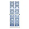 Double Column Wall Unit – Slim Line – High-Capacity Storage Wall Unit in Black with 12 x Primary Red-3” Slim Line Trays, 8 x Primary Red-6" Slim Line Trays and 2 x Primary Red-12" Slim Trays Unit frame finish is Black, lid finish is Gray and supplied with 12 x Primary Red-3” Slim Line Trays, 8 x Primary Red-6" Slim Line Trays and 2 x Primary Red-12" Slim Trays Tote Trays are reversible and feature our unique duel labeling system. Labels and shields are available for the front of the tray, the E-Z Peel Labeling feature on the back of the trays allow any adhesive labels to be removable. The use of high-capacity storage solutions within grade level storage or resource rooms enable learning environments to be free of clutter, supporting highly mobile activities within these environments while reducing square footage requirements. Sturdy Construction: Front and rear fully welded, 1” square, 16-gauge steel tube frames with baked-on epoxy finish. Top panels constructed from 18-gauge formed steel sheets with baked-on epoxy finish. Glide & Tilt® structural runners, moulded from engineering grade ABS, secured to steel tube frames. Frames nested utilizing fluted coated steel metal frame connectors and wall brackets for safety. Units fitted with adjustable feet. Optional Mounting Brackets are supplied with each wall Unit. Two sets of Mounting Brackets included with each wall unit for the option of fixing to a Wall if needed. Mounting screws are not included. Dimensions: 28 3/4′′ W x 75 1/2′′ H x 17′′D