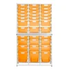 Triple Column Wall Unit – Slim Line – High-Capacity Storage Wall Unit in Black with 21 x Primary Blue-3” Slim Line Trays, 12 x Primary Blue-6” Slim Line Trays and 3 x Primary Blue-12” Slim Line Trays Unit frame finish is Black, lid finish is Gray and supplied with 21 x Primary Blue-3” Slim Line Trays, 12 x Primary Blue-6” Slim Line Trays and 3 x Primary Blue-12” Slim Line Trays Tote Trays are reversible and feature our unique duel labeling system. Labels and shields are available for the front of the tray, the E-Z Peel Labeling feature on the back of the trays allow any adhesive labels to be removable. The use of high-capacity storage solutions within grade level storage or resource rooms enable learning environments to be free of clutter, supporting highly mobile activities within these environments while reducing square footage requirements. Sturdy Construction: Front and rear fully welded, 1” square, 16-gauge steel tube frames with baked-on epoxy finish. Top panels constructed from 18-gauge formed steel sheets with baked-on epoxy finish. Glide & Tilt® structural runners, moulded from engineering grade ABS, secured to steel tube frames. Frames nested utilizing fluted coated steel metal frame connectors and wall brackets for safety. Units fitted with adjustable feet. Optional Mounting Brackets are supplied with each wall Unit. Two sets of Mounting Brackets included with each wall unit for the option of fixing to a Wall if needed. Mounting screws are not included. Dimensions: 42 5/8′′ W x 75 1/2′′ H x 17′′D