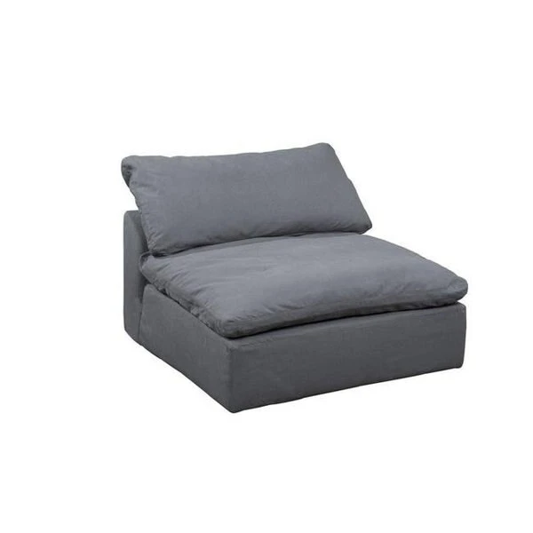 Sunset trading cloud puff collection is truly as comfortable as it looks. Close your eyes. imagine you are floating on a cloud. enjoy this feeling of total relaxation in your home. loft or apartment with this cool sectional collection. The contemporary low frame makes this sleek sectional sofa ideal to bring your open living spaces together. So versatile. instead of a futon in your dorm. spare bedroom or home office. feather pillow top seating supported by inner springs make this as cozy as a bed. Build your own. modular left or right facing corner. armless and ottoman allow you to create the ultimate laidback lounge that conforms to your room. Perfect for kids. pets and parties. unexpected spills will roll off the washable soft fabric slipcovers. This collection is simply the best family room furniture ever. FeaturesComfortable. easy to clean slipcovers that will continue to look as good as the day you bought itHeavy duty. yet soft to the touch. our moisture repellant 98 percent polyester/2 percent nylon fabric is "breathable adding an extra degree of comfortState of the art technology prevents moisture penetration from reaching the back of the fabric as well as the cushionsIdeal for deep seating sofa sectional or end of chaise foot restFeatures plush cushion and state of the art stain resistant fabricSlate gray color adds a modern edge and contemporary flairFoam encased frame with muslin coverFrame constructed from select hardwood and furniture-grade plywood with strong corner blocked joineryAll wood is kiln-dried to remove moisture and prevent cracks or warpsPocket spring construction: sixty steel bands with nylon webbing encased in varying compression 1.8 Density foam make the foundation as comfortable as a bedDouble-stitched one-piece slipcover for extra durabilityResilient 50/50 feather fiber blend cushion is channel-sewn into several compartments to assure even seat supportDouble layered feather proof liningFinished upholstery on all sides. allowing for use as standalone or end pieceSolid neutral finish 1.5 Wood feet with plastic floor protectorsMachine washable. toss dry on low heat to remove wrinkles. Spot clean with mild soap and water. To prevent overall soiling. vacuum or brush lightlyStudio photography lighting and slight measurement variances are possible. Your viewing device may display colors differently than in real lifeSpecificationsColor: GrayOverall Dimension (with Cushions): 36" H x 44" W x 44" DSeat (at Cushion Top): 16" HSeat (floor to Frame): 12" HBack Cushion: 24" H x 44" WSeat Cushion: 36" D x 44" WInside Seat (without Back Cushion): 36" D x 44" WInside Seat (with Back Cushion): 28" D x 44" WInside Back (with Seat Cushion): 6" HInside Back (without Seat or Back Cushion): 12" HWeight: 99 lbs