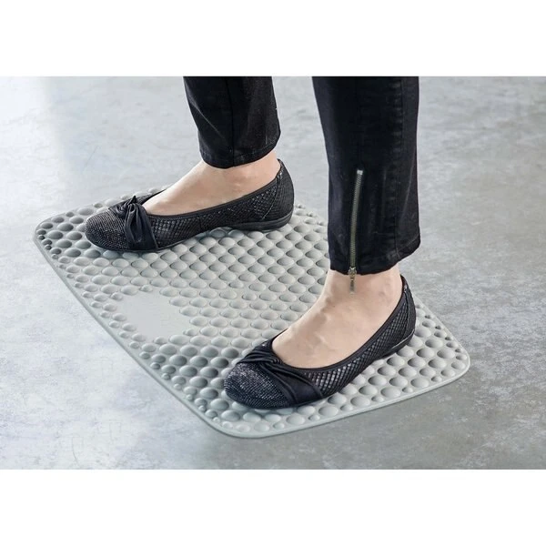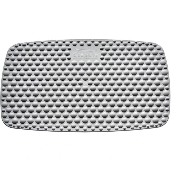 Maximize the health benefits of standing with the Steppie Soft Top Standing Desk Mat. It is the perfect accessory to the Victor Steppie Balance Board. The soft top triggers subconscious movement and helps to stimulate and activate your body to alleviate pain and tension from standing on a hard, flat floor. It takes the concept of an anti-fatigue mat to the next level with hollow bubbles that were designed in accordance with reflexology principles to help improve circulation throughout the whole body. Designed to have the same shape as the Steppie Balance Board, this mat can be placed on top of the balance board with clips to create a dynamic standing experience, or the Soft Top can be used alone. The Soft Top is a simple and natural way to massage your feet and takes pressure off your body. To get the most out of your Soft Top Standing Desk Mat, use it without shoes or barefoot.