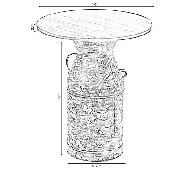 Showcase trinkets and inspire antique glam themes with this wooden and metal coffee table. Designed with wooden top and milk can metal base, this coffee table offers durable and decorative function for everyday use. Surface area allows you to showcase trinkets, plants, and books to keep living room essentials handy. Consider this coffee table for high end living and practical lifestyles.