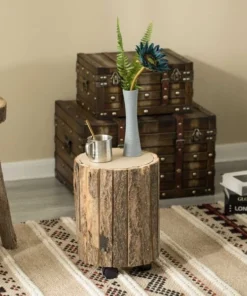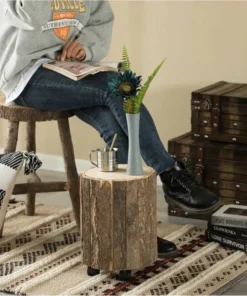 <p>Bring country-style decoration into your living room furnishing collection. This coffee table stool is crafted from natural wood to provide the rustic statement you want to make. Raw cut and unfinished wood add a stylistic character and organic quality. Multi-use, stool may also be used as a small coffee table base, outdoor or indoor plant stand, or nightstand. It's that small and practical decor furniture that makes all the difference.</p><ul><li>SIZE: 9.75" W x 9.75" D x 14" H</li><li>MATERIAL: Composed of durable paulownia material that holds up to 150 Lbs.</li><li>DESIGN: A rough cut for a genuine rustic finish to match a modern or farmhouse decor</li><li>DECOR: Wooden stump stool will add a rustic appeal to your home decor</li><li>USE IN: Accent stool may also be used as a small coffee table base, indoor plant stand, or nightstand</li></ul>