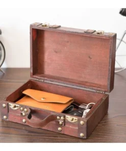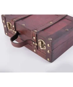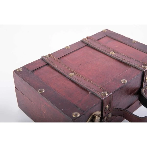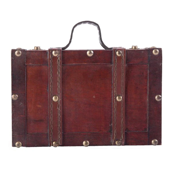 This vintage style wooden suitcase will add visual interest to any space. With decorative leather straps and a sturdy wooden exterior, this luggage shaped treasure chests will add a charming touch to your home or office. It's also an ideal storage solution for play cards, mementos and business cards. Interior dimensions are approximate: 7.25 W 4.25 D 1.75 H, plus 1 for the cover.