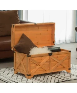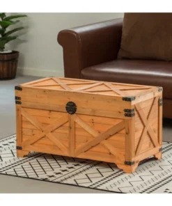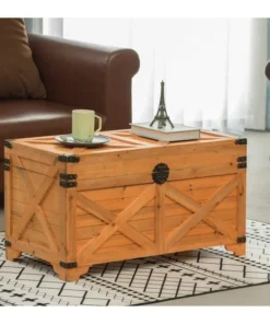 Dress up your living room and bedroom storage with this large wood trunk. This classic trunk lets you get organized while adding a decorative touch to your space. Perfect for storing blankets, throws, games and books. The top also works as a coffee table to serve food, too.