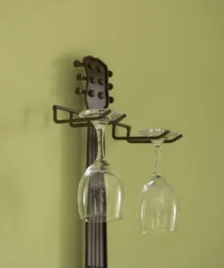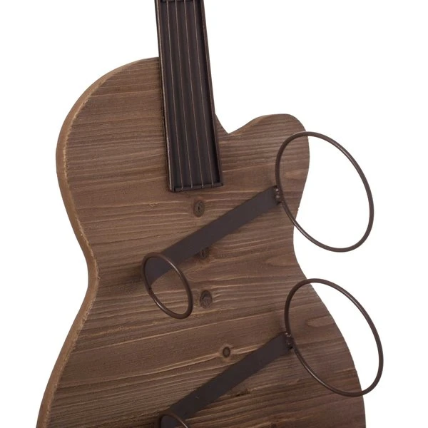Complete the decor of your room with this vintage guitar wine holder. Composed out of durable wood and metal material, this wine holder offers durability and practical function for continual use. The wine rack holder holds up to 2 bottles of wine and 2 glasses. It's the perfect decoration for a home, office, restaurant, or any place of your choice.