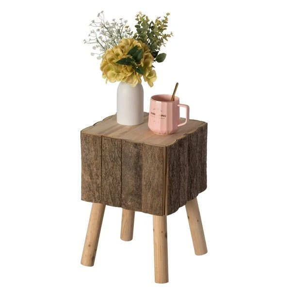<p>Bring country-style decoration into your living room furnishing collection. This coffee table stool is crafted from natural wood to provide the rustic statement you want to make. Raw cut and unfinished wood add a stylistic character and organic quality. Multi-use, accent table may also be used as a stool, small coffee table base, outdoor or indoor plant stand, or nightstand. It's that small and practical decor furniture that makes all the difference.</p><ul><li>SIZE: 11" W x 11" D x 15.75" H</li><li>MATERIAL: Composed of durable paulownia material that holds up to 150 Lbs.</li><li>DECOR: Wooden side table will add a rustic appeal to your home decor</li><li>USE IN: Accent table may also be used as a stool, small coffee table base, indoor plant stand, or nightstand</li><li>DESIGN: A rough cut for a genuine rustic finish to match a modern or farmhouse decor</li></ul>