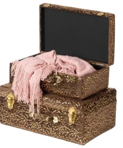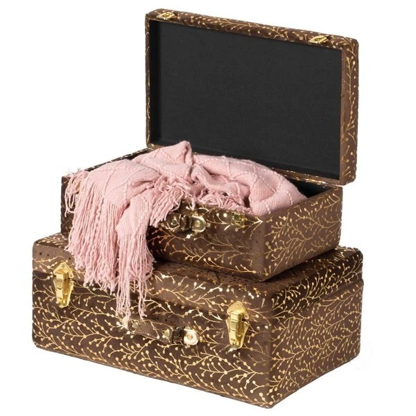 Add astonishing appeal and modern style to your home décor with this beautiful set of storage trunks. Superbly crafted in wood and tufted velvet, these trunks are truly wonderful work of art. Velvet button tufted design and gold hardware gives your decor collection a decorative spin. Place them anywhere to meet your storing needs in a modern way and give your interior décor an innovative and distinctive flair by adorning it with these fully practical decorative trunks. Declutter and Decorate!