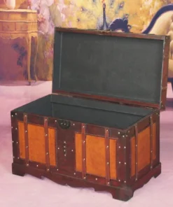 Evoke a Victorian-era feel in your home with this gorgeous handcrafted wooden trunk. Add a touch of old-fashioned charm to the distressed stained wood surface. Its large size provides ample storage space. Perfect for storing books, blankets, and more.