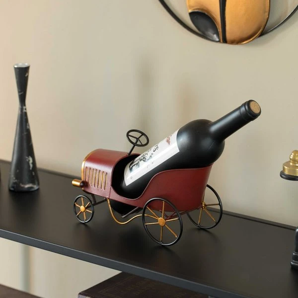 Display and organize your wine bottles with this metal car shaped wine bottle rack. Use this wine holder as a centerpiece decoration to your entryway, bedroom, office, living room, dining room, kitchen counter, buffet table, wine cellar or bar cart. This wine rack has room for one standard bottles of your favorite wine and liqueur. Freestanding design keeps the wine stand steady and your wine collection secure. This is not only a wine bottle holder but also a real artwork. Decorate your home and bar while adding a modern and contemporary charm!