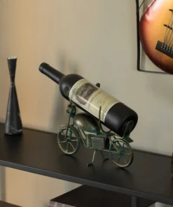 Display and organize your wine bottles with this metal motorcycle wine bottle rack. Use this wine holder as a centerpiece decoration to your entryway, bedroom, office, living room, dining room, kitchen counter, buffet table, wine cellar or bar cart. This wine rack has room for one standard bottles of your favorite wine and liqueur. Freestanding design keeps the wine stand steady and your wine collection secure. This is not only a wine bottle holder but also a real artwork.  Decorate your home and bar while adding a modern and contemporary charm!