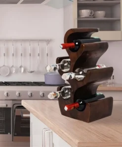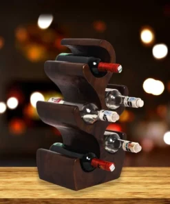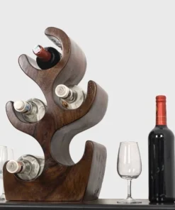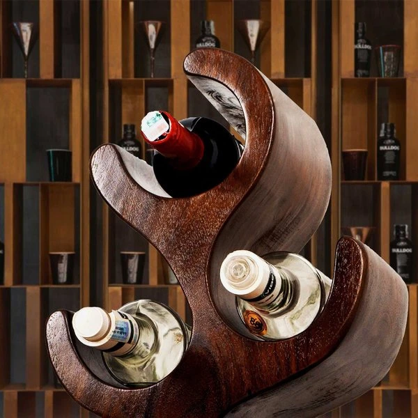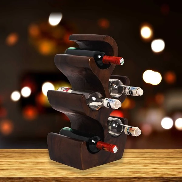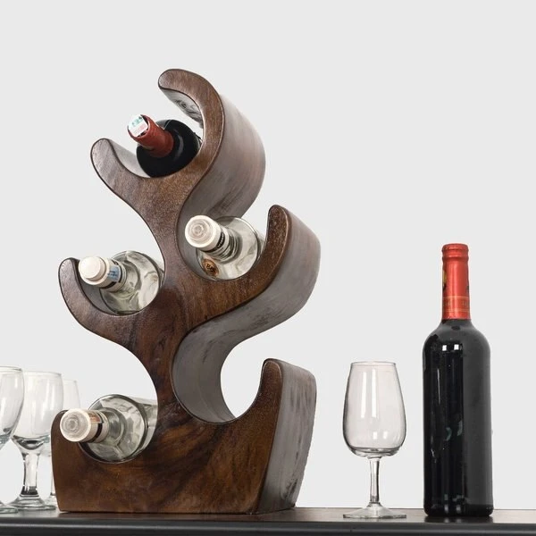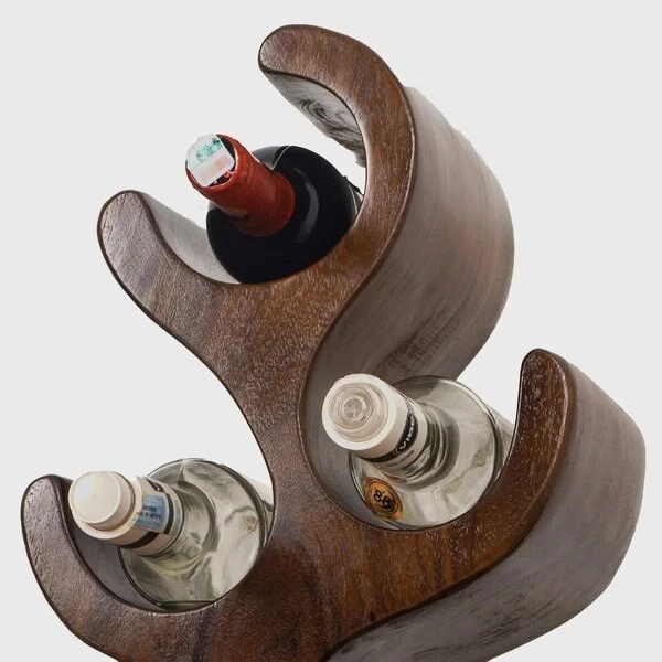<p>This beautiful 5 bottle wine rack is skillfully hand carved, shaped and hand sanded from an exotic solid hardwood. The wood has a beautiful grain pattern with natural light and dark streaks running throughout. One of the great beauties of wood is that a wood's grain pattern is never the same, and each is a functional work of art. This carved wooden wine bottle rack is both rustic and modern, creating a rustic chic appeal. The natural wood suggests rusticity, but the soft curves give it a modern design.</p><ul><li>SIZE: 10.25" W x 7.75" D x 19.75" H</li><li>MATIRIAL: Crafted from Salman Wood Monkey Pod Tree</li><li>DISPLAY: Use as a centerpiece decoration to your dining room, wine cellar, or bar</li><li>MODERN DESIGN: Freestanding wine holder will add a minimalist appeal to your dining decor</li><li>SAFE: When stored, bottles sit horizontally so that wine comes into contact with the cork and stops it from drying</li></ul>