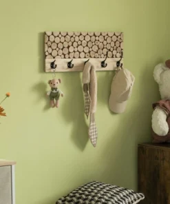 <p>Add a beautiful charm to your home with this wooden wall-mounted hook rack. The wood-sliced design creates a rustic look. Five classic black hooks are mounted on a distinct rectangular board of wood that has split sliced round pieces of wood. It's a stylish product for every room in the house, and beyond. From the entryway to the kitchen, living room, bedroom, dining room, home office, closet, and playroom.</p><ul><li>SIZE: 23.25" W x 9.25" D x 2.5" H</li><li>ANTIQUE: This real wood will give a rustic look in any room</li><li>MATERIAL: Made out of fine natural sliced wood</li><li>USE: This hook rack is perfect to hold your on-the-go essentials</li><li>IMPRESSION: This unique hook rack, exudes a rustic charm and is a real eye-catcher</li></ul>