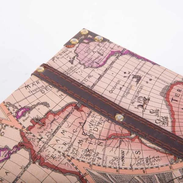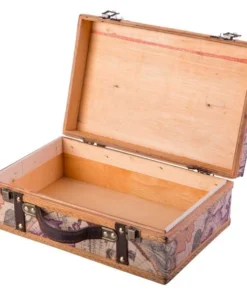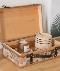 Vintiquewise Old World Map Suitcase is the perfect keepsake box for all your vacation mementos. The suitcase is covered faux leather with a map print, which adds to the overall nostalgic feel.