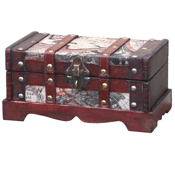 Dress up your living room and bedroom storage with this small vintage style wooden treasure chest with small padlock. This classic trunk lets you get organized while adding a decorative touch to your space. Perfect for storing games, books and small trinkets.