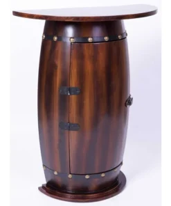 Complete the decor of your room with this vintage barrel shaped wine cabinet. Composed out of durable wood material, this wine holder offers durability and practical function for continual use. Vintage wooden material, rustic latch, studded detail, and barrel shape will add a decorative appeal to your room decor. Top shelf provides extra space to store and display glasses and wine. Use this wine bottle cabinet to store up to 10 wine bottles to keep your wine collection secure and handy.