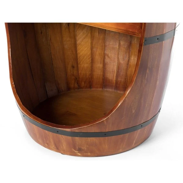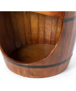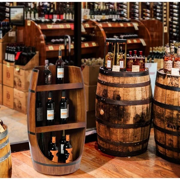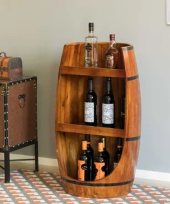 This industrial style wooden barrel-shaped wine rack will add a final touch to your dining room or wine cellar. Designed to be used in living space as well as storage areas, it provides convenient and practical storage as well as warm rustic style. The freestanding design keeps the wine rack steady and your wine collection secure. Use it to store or display wines, liqueurs, or glasses.