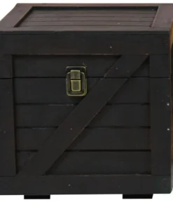 <p>This decorative storage chest is designed to appear like a wooden cargo crate. The decorative wooden box provides ample storage space while adding a decorative touch to any room. Multiple crates can be easily stacked and organized in various arrangements.</p> <ul><li>Measurements: 8.5" W x 8.5" D x 8.5" H</li><li>Black crate style storage box</li><li>Decorative wood treasure chest</li><li>Functional cargo crate great for storage or display</li><li>Multiple crates may be stacked in numerous arrangements</li></ul>