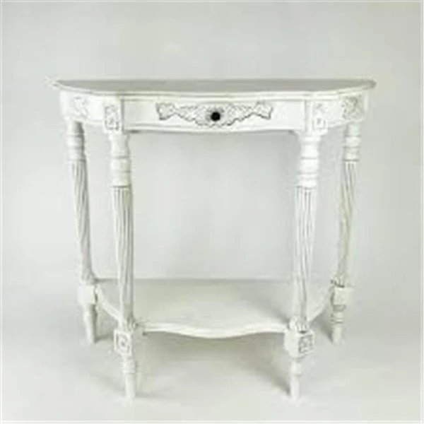 Browse our wide selection of small and big home; kitchen and bakery appliances designed keeping quality and reliability in mind. These Bakery products are easy to use and make your everyday life much convenient and comfortable.FeaturesDemilune Console Table – WhiteSpecificationsColor: WhiteNumber of Drawers: 1Number of Shelves : 1Dimension: 32'' H x 34'' W x 14'' DWeight: 19 lbs