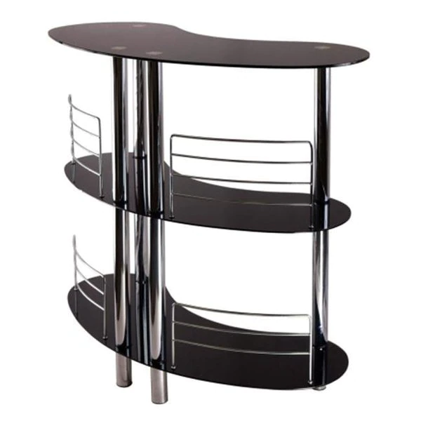 Create an instant bar counter with Martini Entertainmenet Unit. Elegant and functional with Tempered Glass top and shelves. Chrome Palte Steel Metal Accent. The curved shape provides excellent serving spot and uniqueness to the unit. Overall size : 47"W x 22.6"D x 41.8"H. Bottom Shelf Clearance is 17.9" and 18.25 for middle shelf. Metal Rail Height is 8.24" an 9.61". Assembly Requiredlength: 47.05width: 22.64height: 41.85